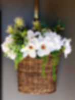 *two white hydrangeas. As the opening of my basket is larger than the base, I needed voluminous flowers to fill the space. These hydrangeas are perfect with their multi-blossom petals.